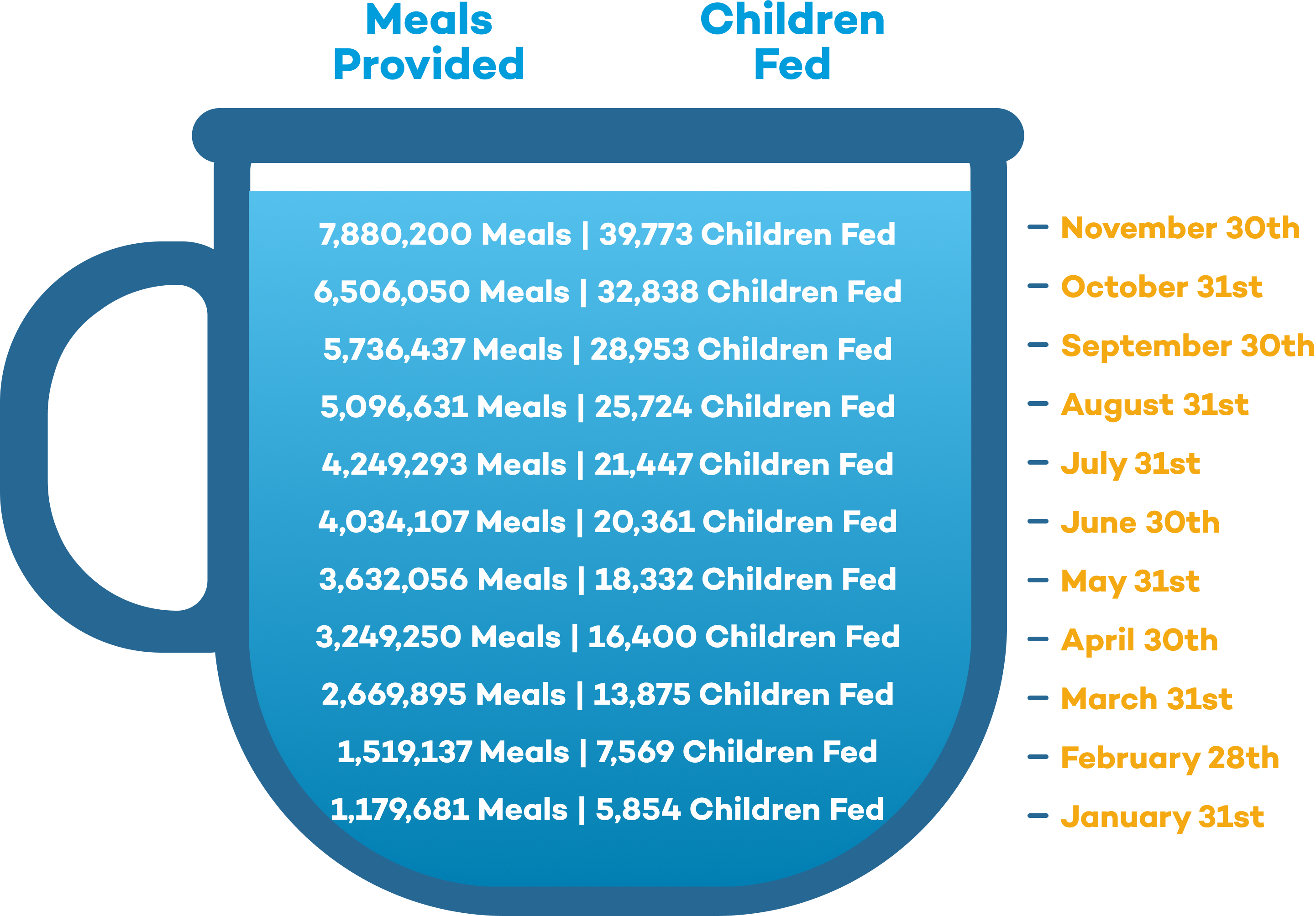 Every little act of love counts! Join us on our mission to provide 12,656,243 meals to 63,880 children in their place of learning throughout the world's poorest communities.