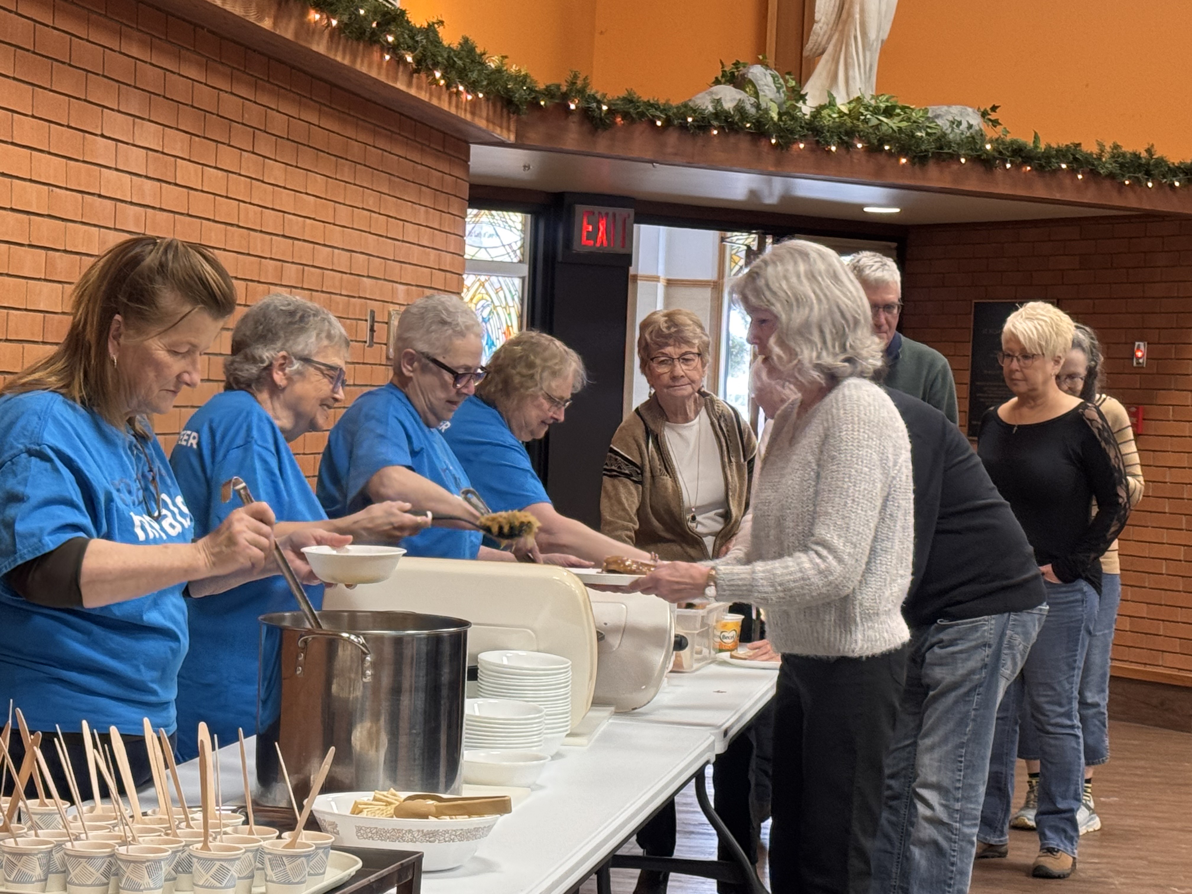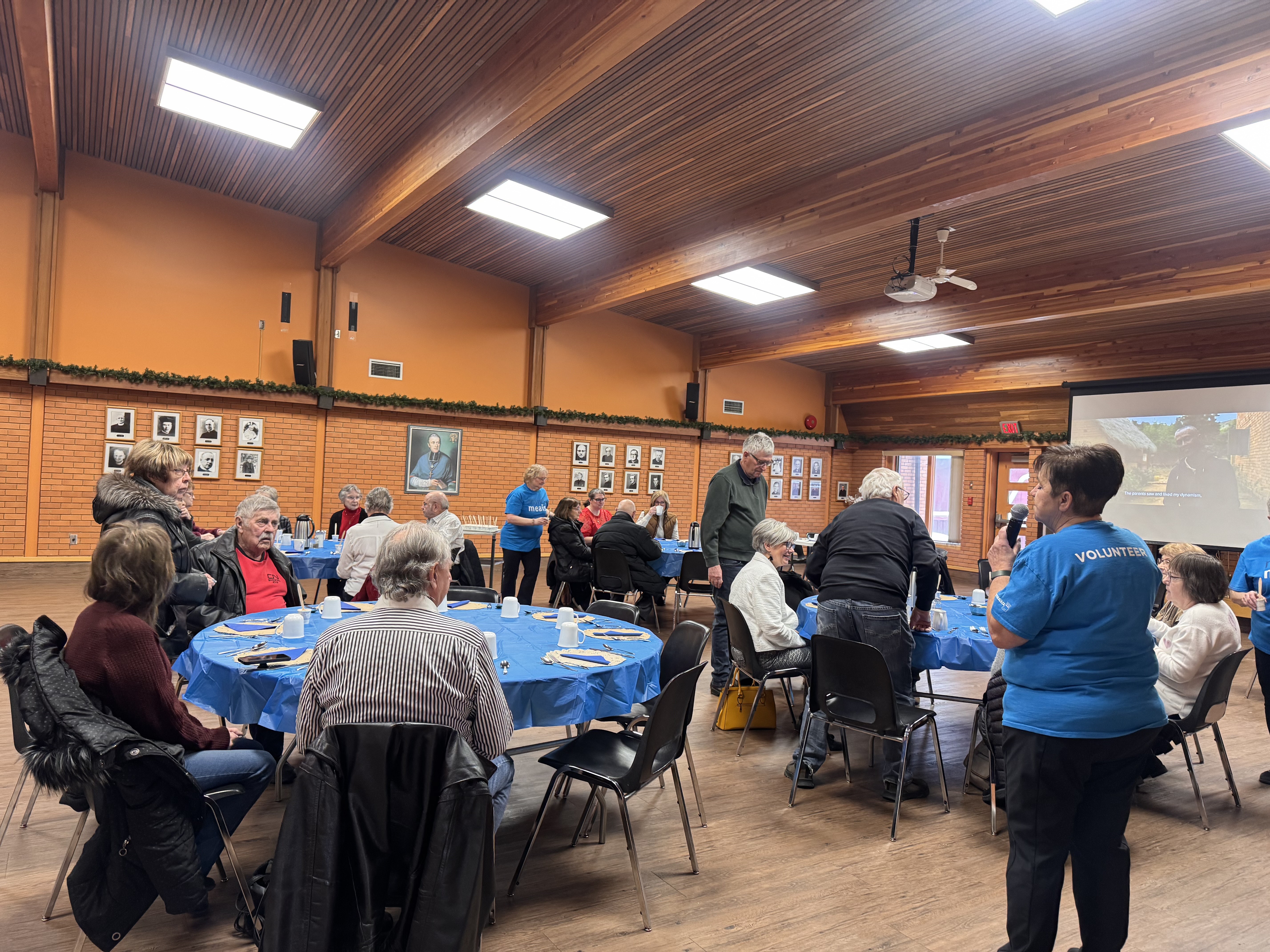 Proudly wearing their Mary's Meals t-shirts, volunteers served a delicious lunch and attendees were shown the film Walking Together.